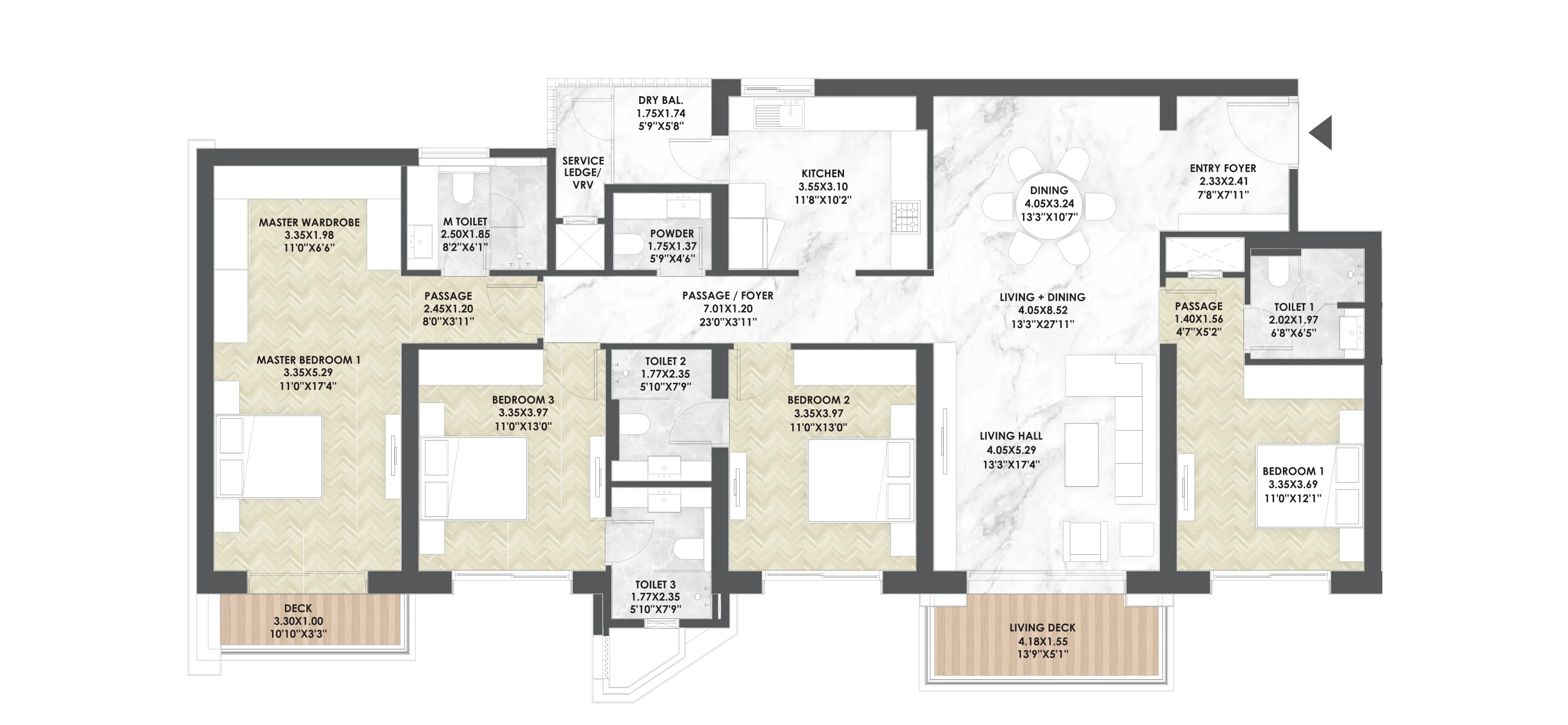 A realm of sophistication and opulence awaits as the esteemed Manish Malhotra lends his signature design expertise to the exclusive Burgundy One Residences by Mantra. With his unparalleled artistry, every corner of your home is carefully transformed into an epitome of refined luxury, grace, and timeless allure.